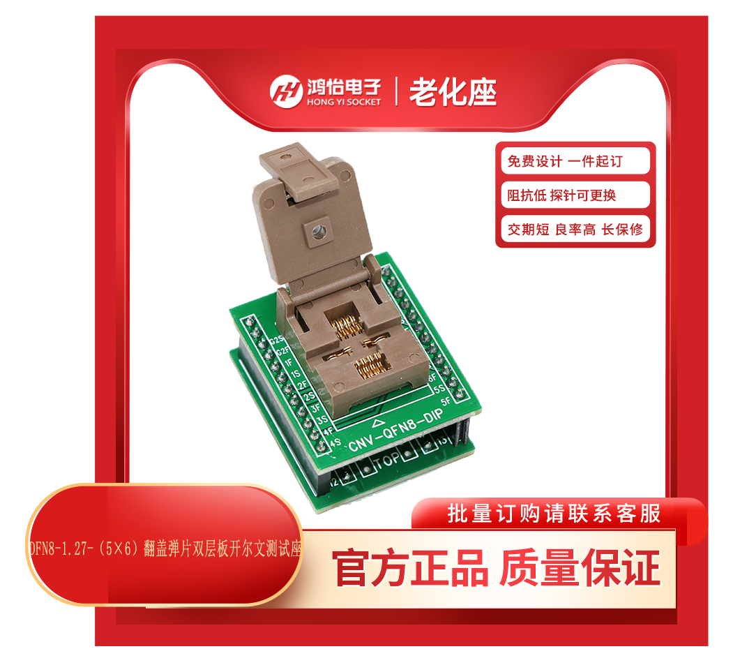 DFN8-1.27-(5×6)翻盖弹片双层板开尔文测试座