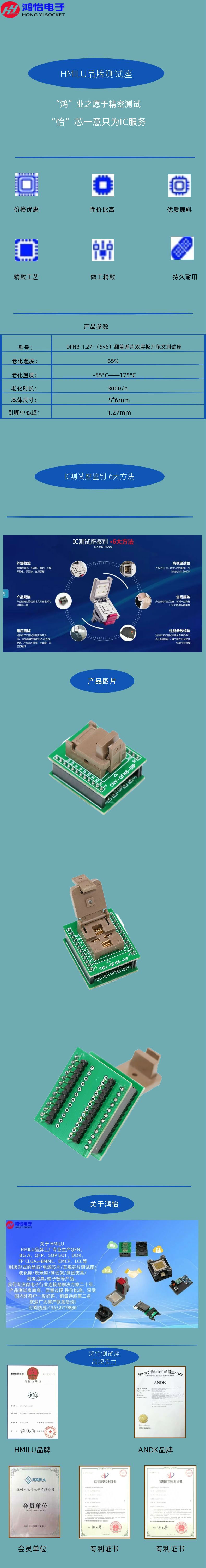 商品名称:DFN8-1.27-(5×6)翻盖弹片双层板开尔文测试座